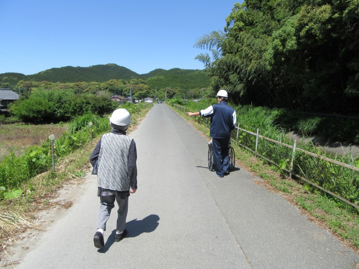 原則「徒歩」で避難という要綱をマジメな千両荘は原則を守って徒歩で向かいます。