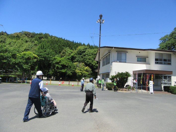 とても訓練中とは思えないのどかで和気あいあいとして雰囲気で散歩避難しています。
