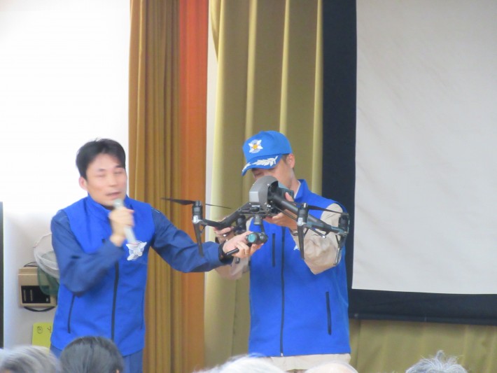 ドローンの説明をする豊川市企画部防災対策課の職員さんです。
