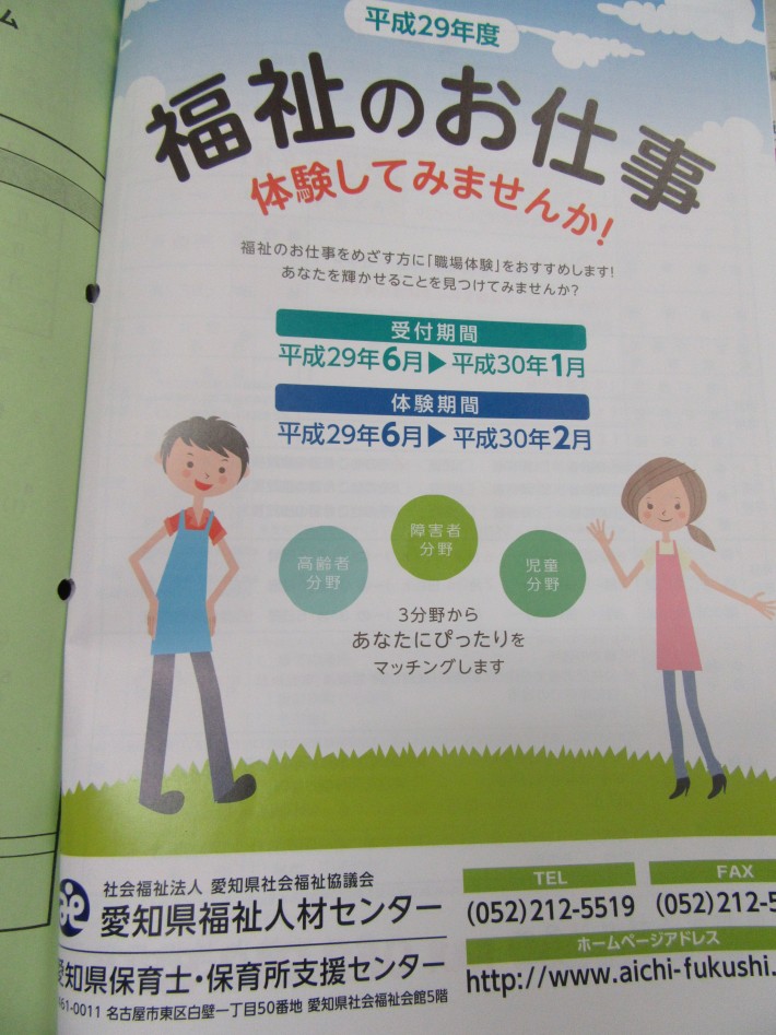 皆様は愛知県社協さんが実施している「職場体験事業」をご存じですか?