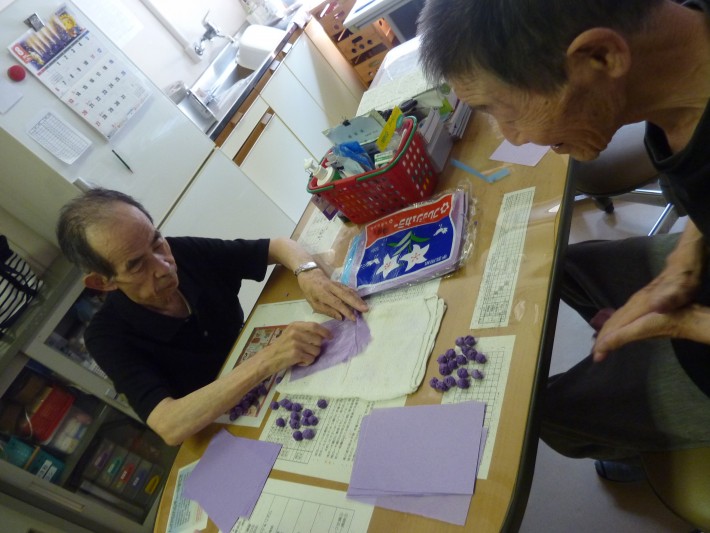 お花紙を湿らせて、掌でコロコロ転がして、