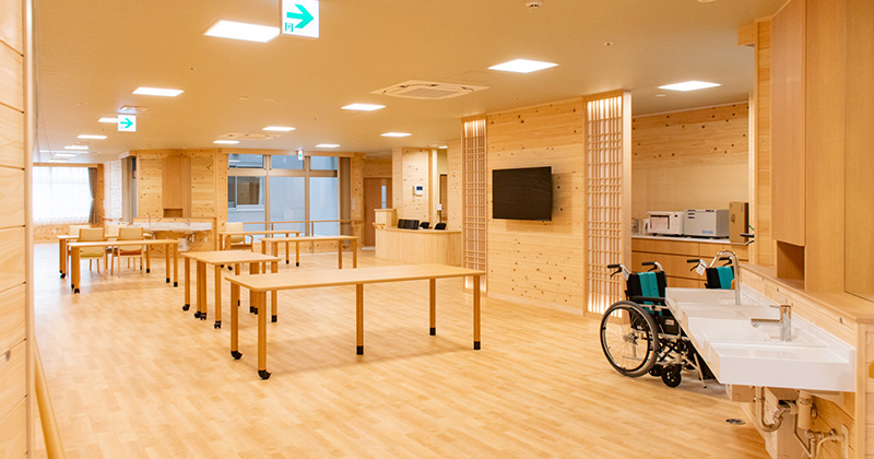 従来型では利用者様全員で食堂に集まり、ワイワイ愉しく食事を楽しんでいただけます。